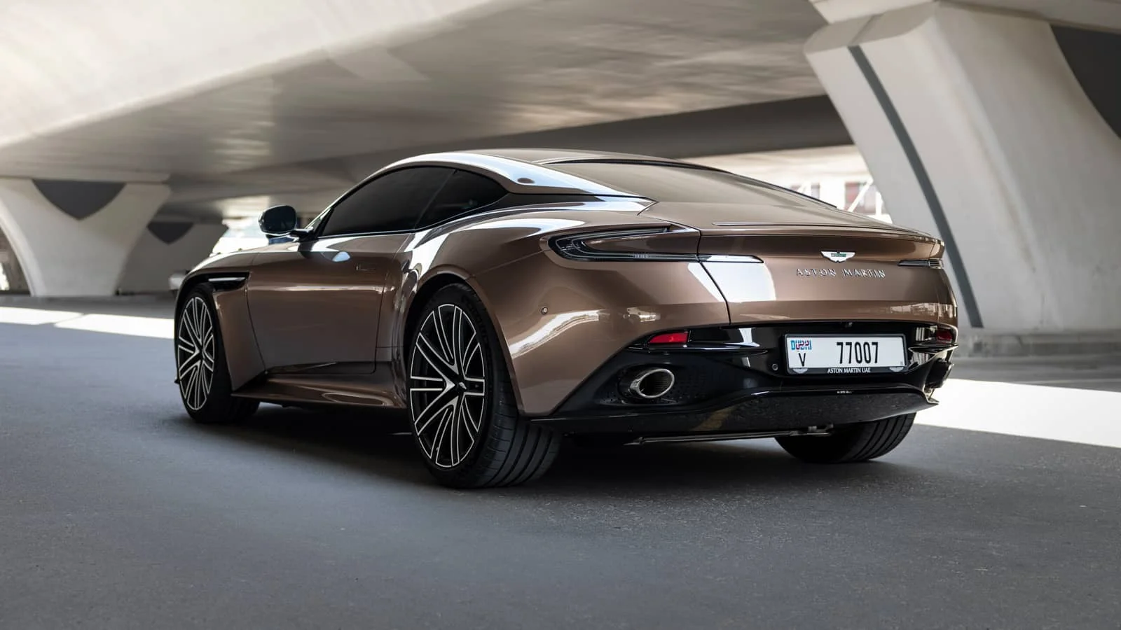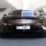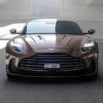Exterior: Finished in Brown/Gold, the DB12 carries Aston Martin’s signature wide grille, sleek LED headlights, and aerodynamic contours. It rides on 21-inch alloy wheels, while lightweight aluminum construction helps maintain strength and agility.