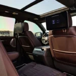 Interior Features: The interior of the Escalade V offers a luxurious cabin with a 38-inch curved OLED display spanning the instrument cluster and infotainment system. Wireless Apple CarPlay and Android Auto compatibility, along with a 19-speaker AKG Studio sound system, ensure an exceptional audio and tech experience. Premium leather upholstery, wood accents, and customizable ambient lighting elevate the interior’s luxury feel.