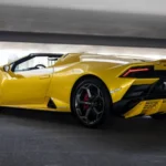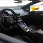 Exterior: Finished in Yellow, the Huracán EVO features angular bodywork with Y-shaped LED headlights, a low front fascia, and large side intakes. It rides on 20-inch alloy wheels and includes an integrated rear spoiler and diffuser for aerodynamic efficiency.